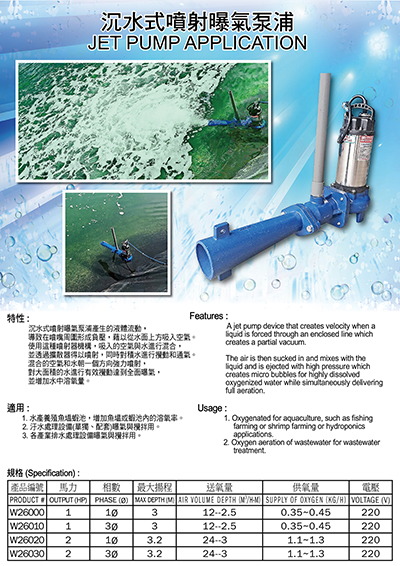 沉 水 式 噴 射 曝 氣 泵 浦 = (W26000,W26010,W26020,W26030)